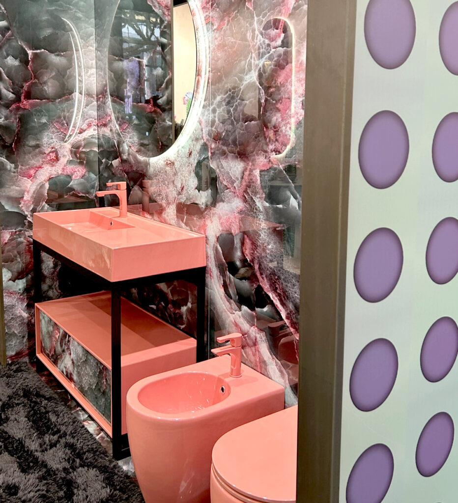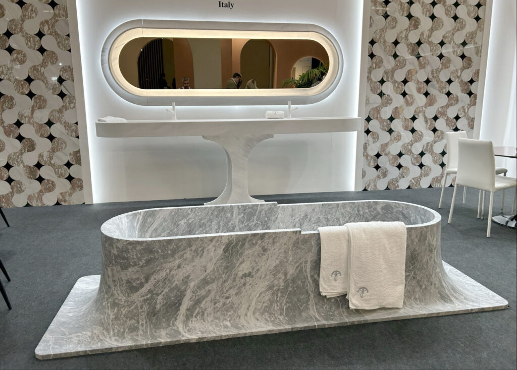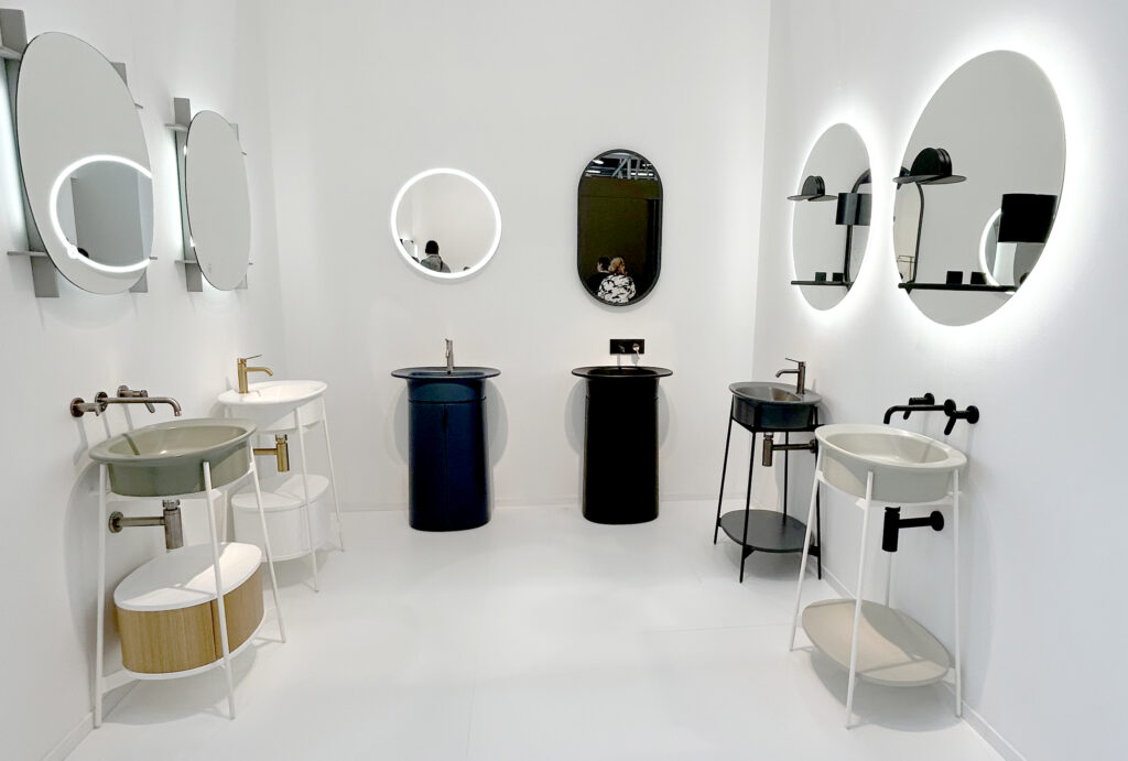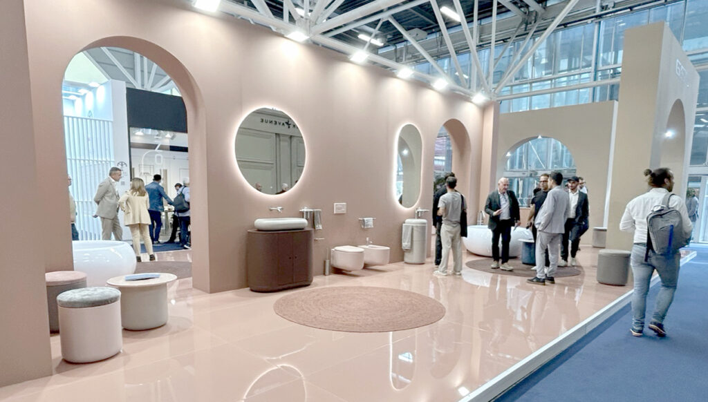 A strong newcomer at the fair was the combination of ceramics with composite materials, designed to withstand wear while adding a new tactile quality. Mineral- and wood-inspired surfaces with pronounced veining evoke marble and stone, but with a softer feel. Ribbed textures on basins, bathtubs and furniture also remain a strong trend.